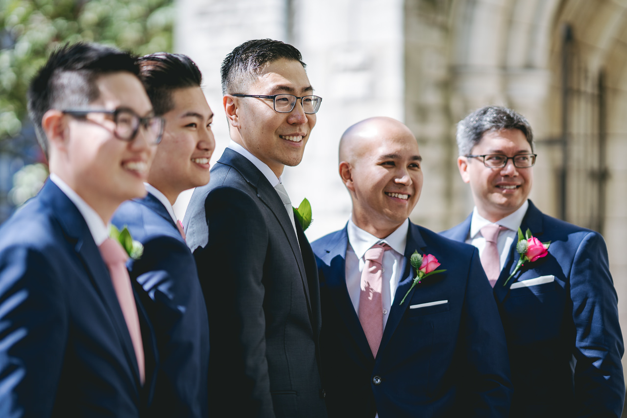 The historic building was filled with friends, family, the romantic sounds of violin and piano and was glowing with beautiful light from the gorgeous stained glass windows. A magical beam of sunlight came in through one of the high windows, just hitting the couple, like a natural spotlight.