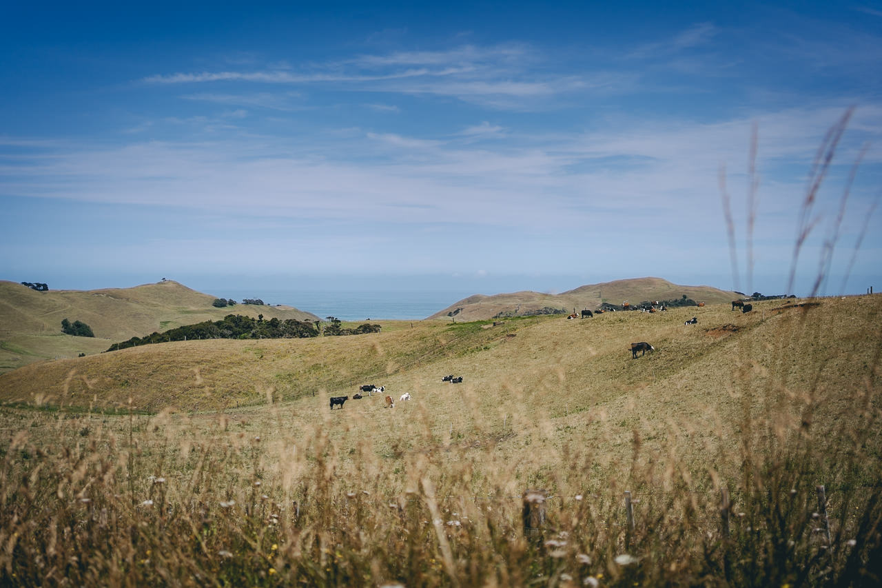 Ruapuke had absolutely everything you'd want on a sunny wedding day: a bach with a view for the girls to get ready, rolling hills with sea views, a forest area perfect for their ceremony and sunset couples photos, a marquee with views on Mount Karioi and plenty more photo spots around their farm and the neighbouring land.