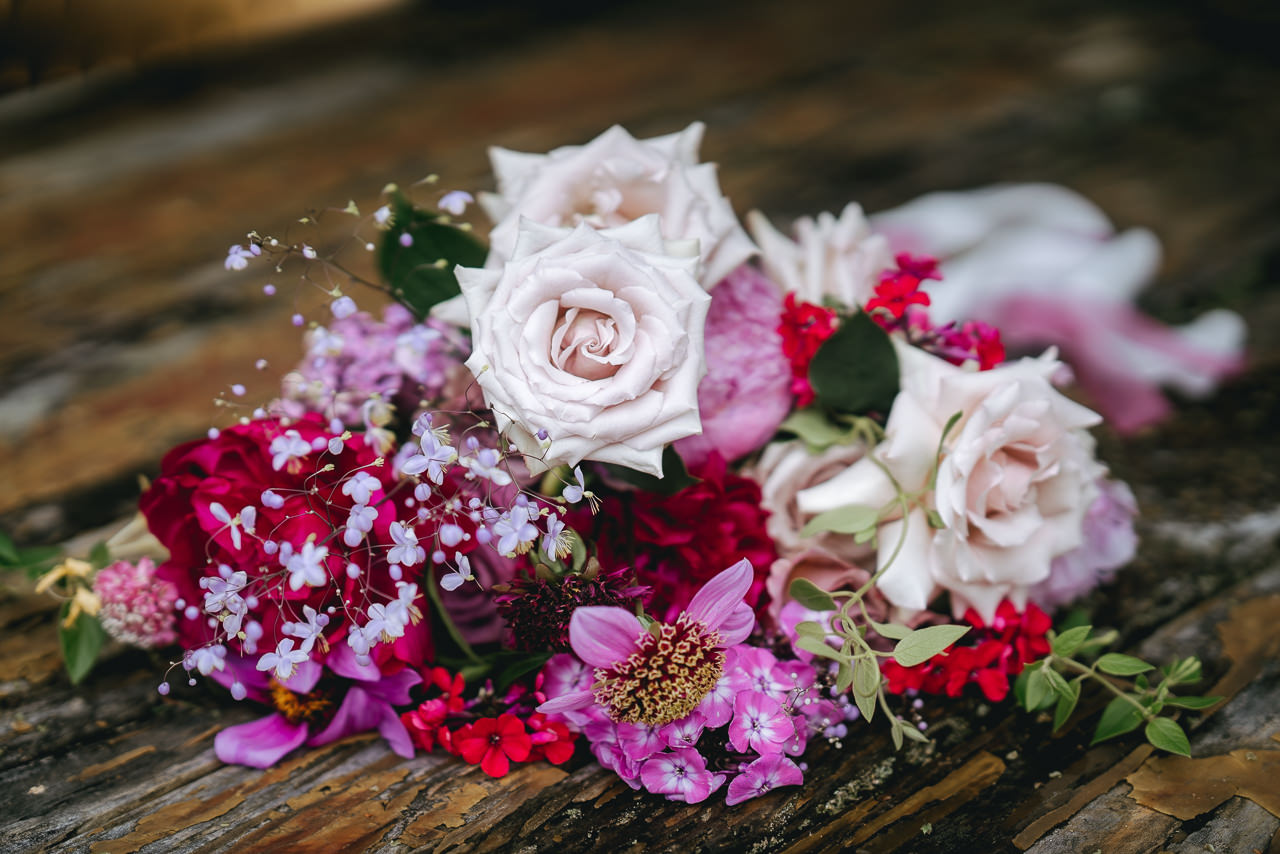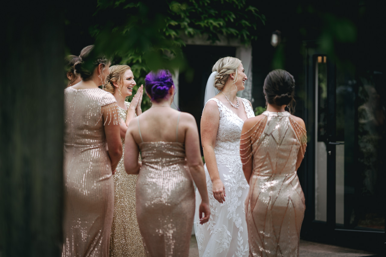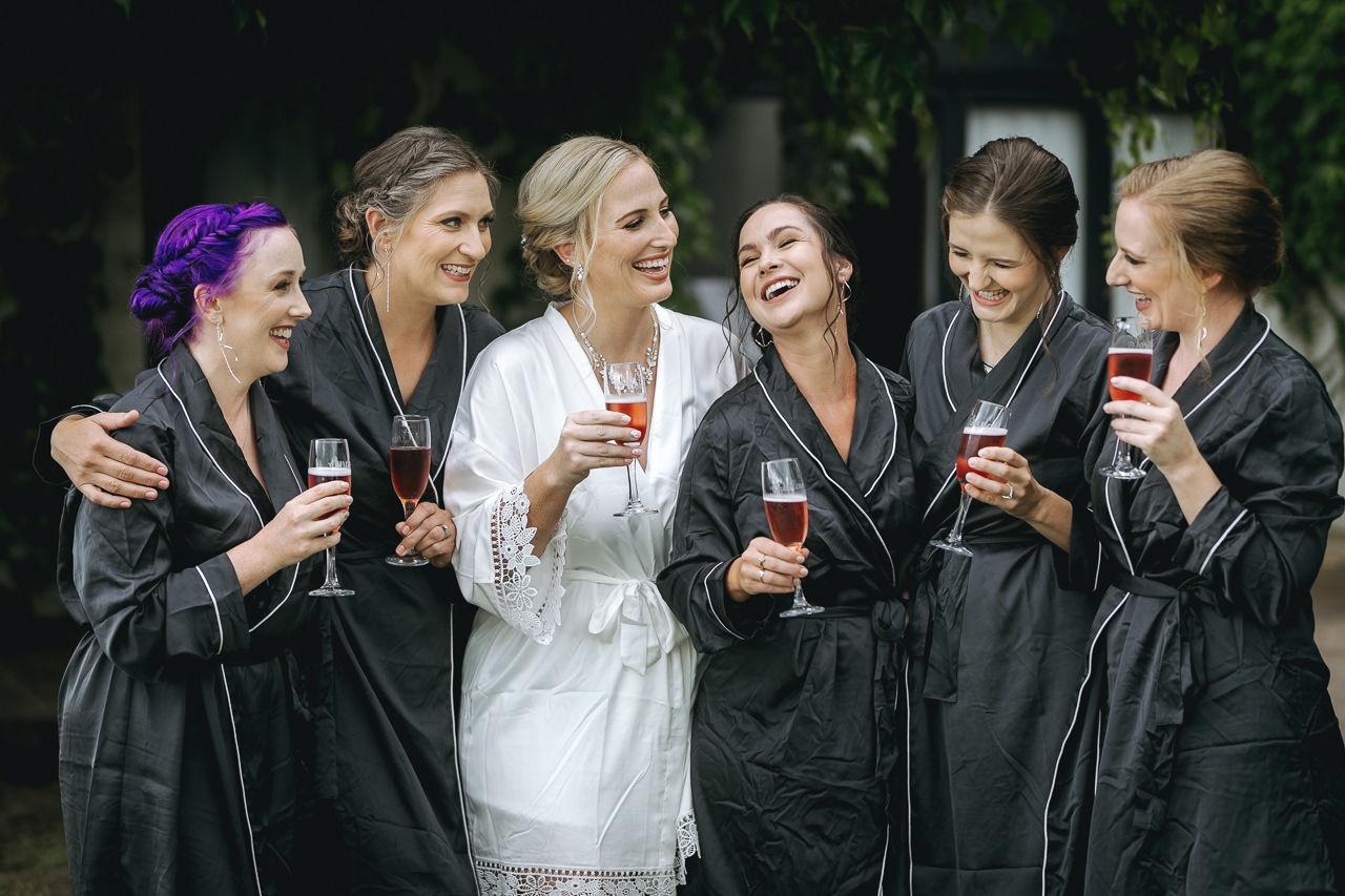 We started the day capturing candid photos of the groom and his boys shooting clay targets, before getting ready at The Painted Barn. We then joined the bride and her tribe (one of them, Angela, a previous bride of ours) at the Moata Clevedon Country Home, a beautiful homestead surrounded by lovely gardens - the ideal spot for some amazing detail shots and dress reveals to her dad and bridesmaids, with some great reactions!